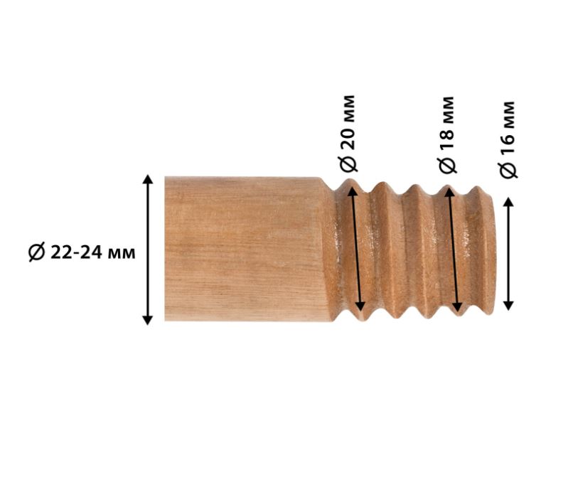Черенок покрыт лаком, устойчив к плесени, удобен в использовании и долговечен. Подходит к любым щеткам, швабрам и насадкам.