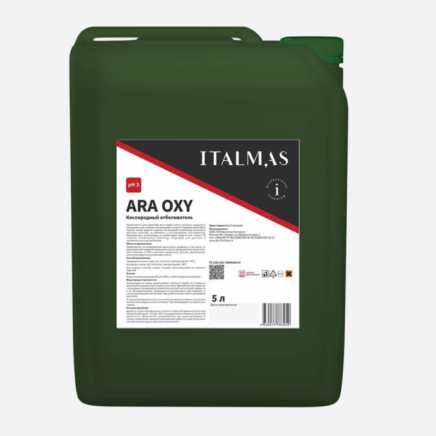 У нас можно купить профессиональный кислородный отбеливатель для стирки белья в прачечной ARA OXY. Если вам нужна на кислородный отбеливатель для прачечной ARA OXY оптовая цена, то присылайте вашу заявку. Область применения Применяется на предприятиях различного профиля, в том числе на предприятиях пищевой промышленности, предприятиях общественного питания, в ЛПУ, санаторно-курортных, детских, дошкольных, школьных и других учреждениях, в быту. Преимущества Применяется для удаления всех видов пятен, которые поддаются выведению при помощи отбеливающих средств. Подходит для любых тканей, кроме шерсти и шелка. Не вызывает изменения оттенков у цветных изделий, устойчивых к кислородному отбеливанию. Отбеливатель подходит для ручного и автоматического дозирования в прачечной. Рекомендуется использовать в комбинации средств для стирки LEO Expert и Ursa Expert. Дозировка Предварительная стирка: 3,0 – 6,0 мл/кг, температура 60 – 95ºС. Основная стирка: 3,0 – 10,0 мл/кг, температура 60 – 95ºС. Для выбора способа стирки следуйте рекомендациям на ярлыках изделий. Состав: вода, перекись водорода (более 30%), стабилизирующие добавки. ximiks.ru
