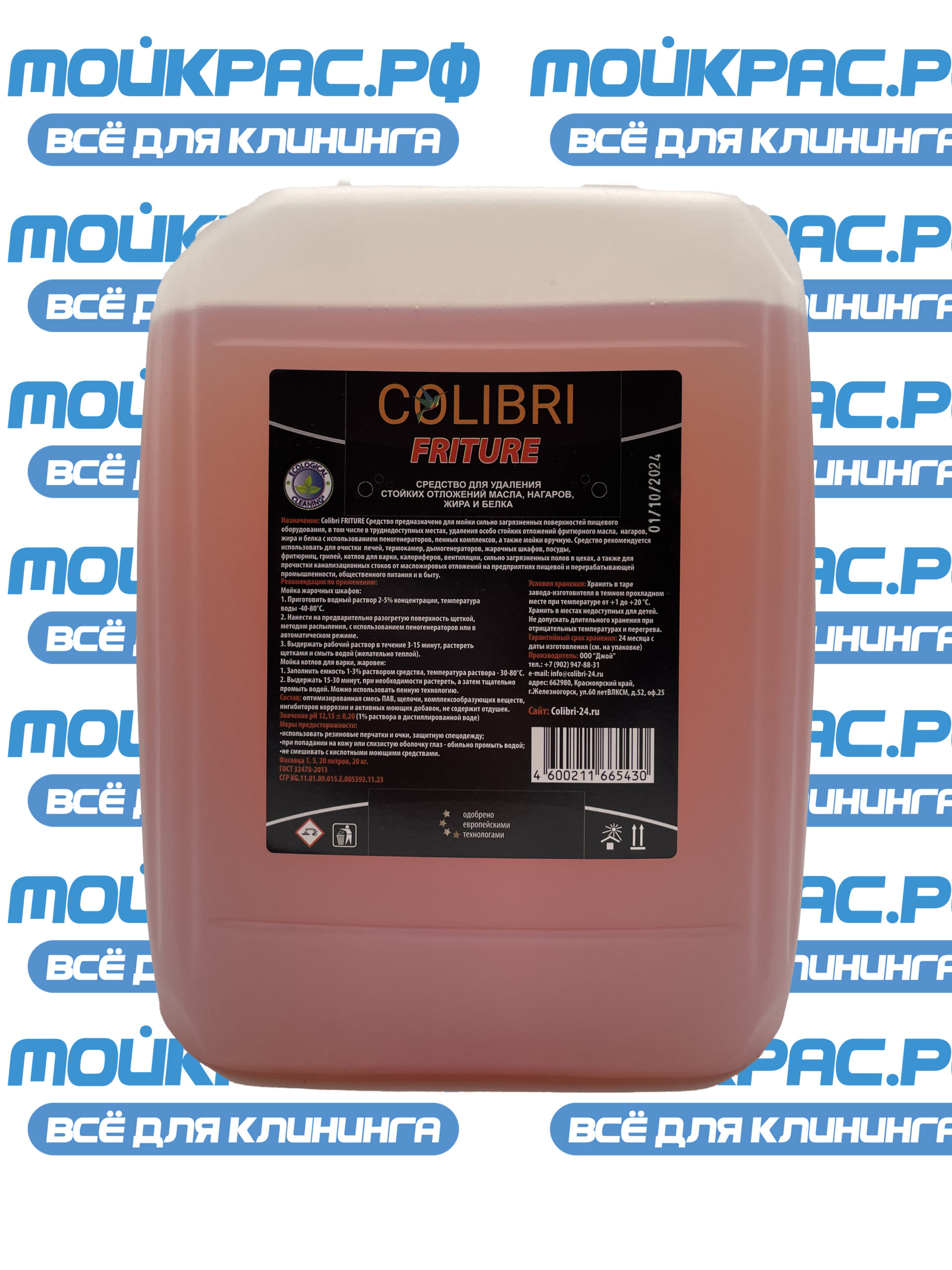 Colibri FRITURE – щелочное пенное средство для удаления нагара, жировых и белковых загрязнений с пищевого оборудования и технологических поверхностей. Подходит для сильно загрязнённых зон и труднодоступных участков, удаляет стойкие отложения масла, жира, белка и нагар.