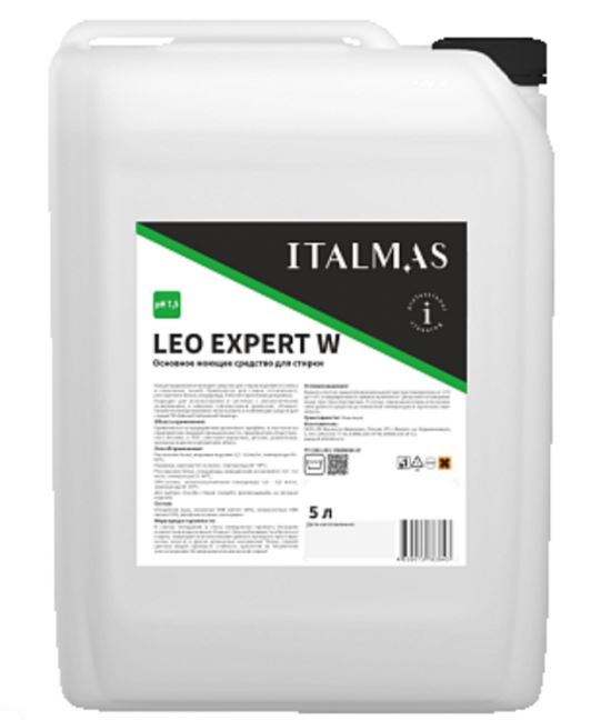 Концентрированное моющее средство для стирки изделий из хлопка и смешанных тканей Leo Expert W применяется для стирки гостиничного, ресторанного белья, спецодежды. Работает при низких дозировках.