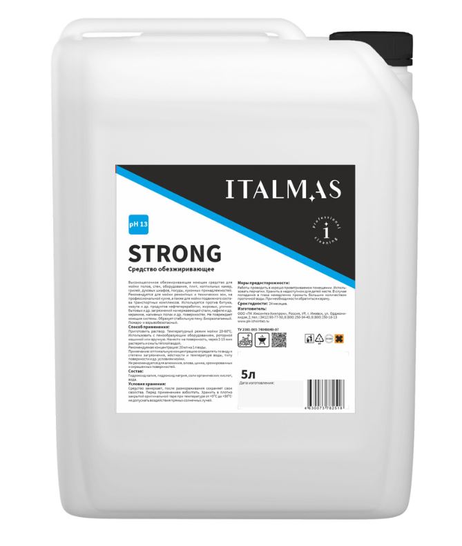 Щелочное концентрированное пенное обезжиривающее моющее средство для ежедневной мойки полов, стен, оборудования, плит, коптильных камер, грилей, духовых шкафов, посуды, кухонных принадлежностей. Рекомендуется для мойки ремонтных и технических зон, на профессиональной кухне. Используется против битума, мазута и др. продуктов нефтепереработки, жировых, улично-бытовых и др. загрязнений на нержавеющей стали, кафеле и др. керамике, наливных полах и др. поверхностях. Не повреждает моющие системы. Образует стабильную пену. Биоразлагаемый. Пожаро- и взрывобезопасный. Не рекомендуется для цветных металлов, окрашенных поверхностей. Не использовать для посудомоечных машин. Концентрация: 21 мл. на 1 л. теплой воды. (2%) или на горячей поверхности (температура мойки 200С-600С) pH: 13