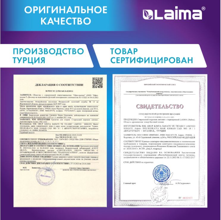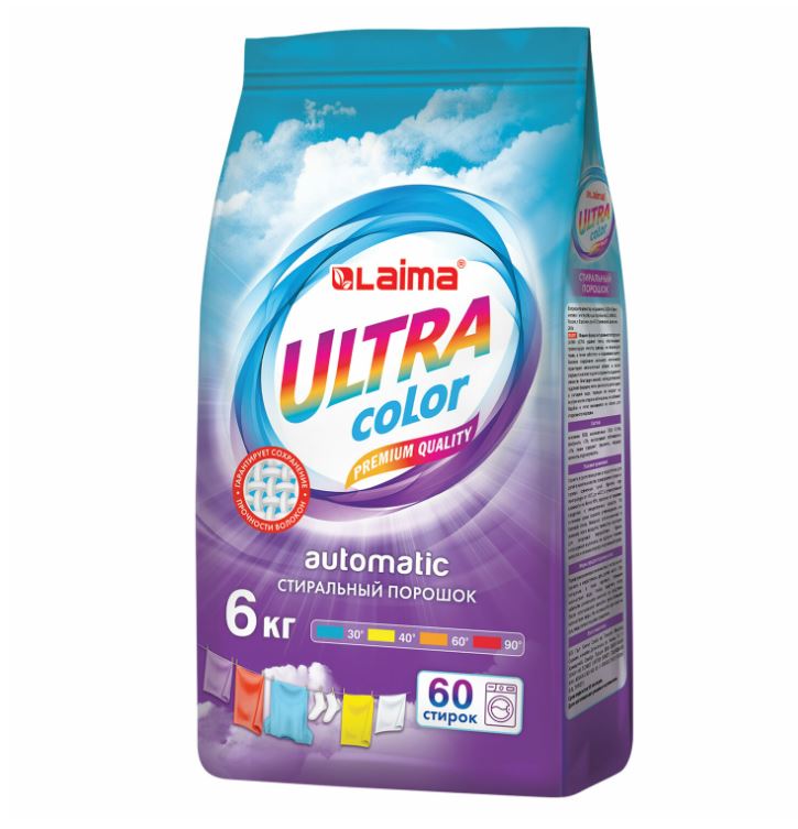 Мощная формула стирального порошка LAIMA ULTRA COLOR удаляет пятна, обеспечивает превосходную очистку одежды, не повреждая ткани, а также обеспечивает защиту цвета.
