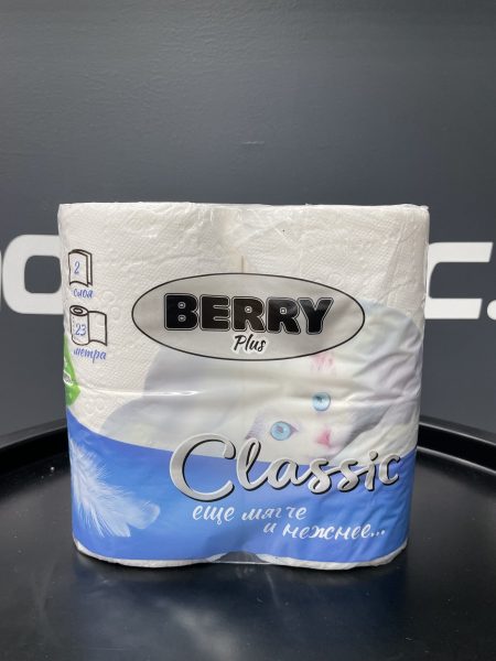 Туалетная бумага Berry – 2-слойная бумага в рулоне длиной 110 метров для санитарных зон с регулярной нагрузкой, подходит для оснащения туалетных комнат в коммерческих и общественных помещениях.